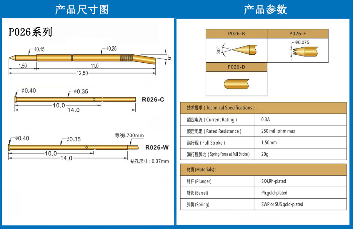 測試探針 P026 當前位置:首頁 » PCB測試探針 » P026探針系列